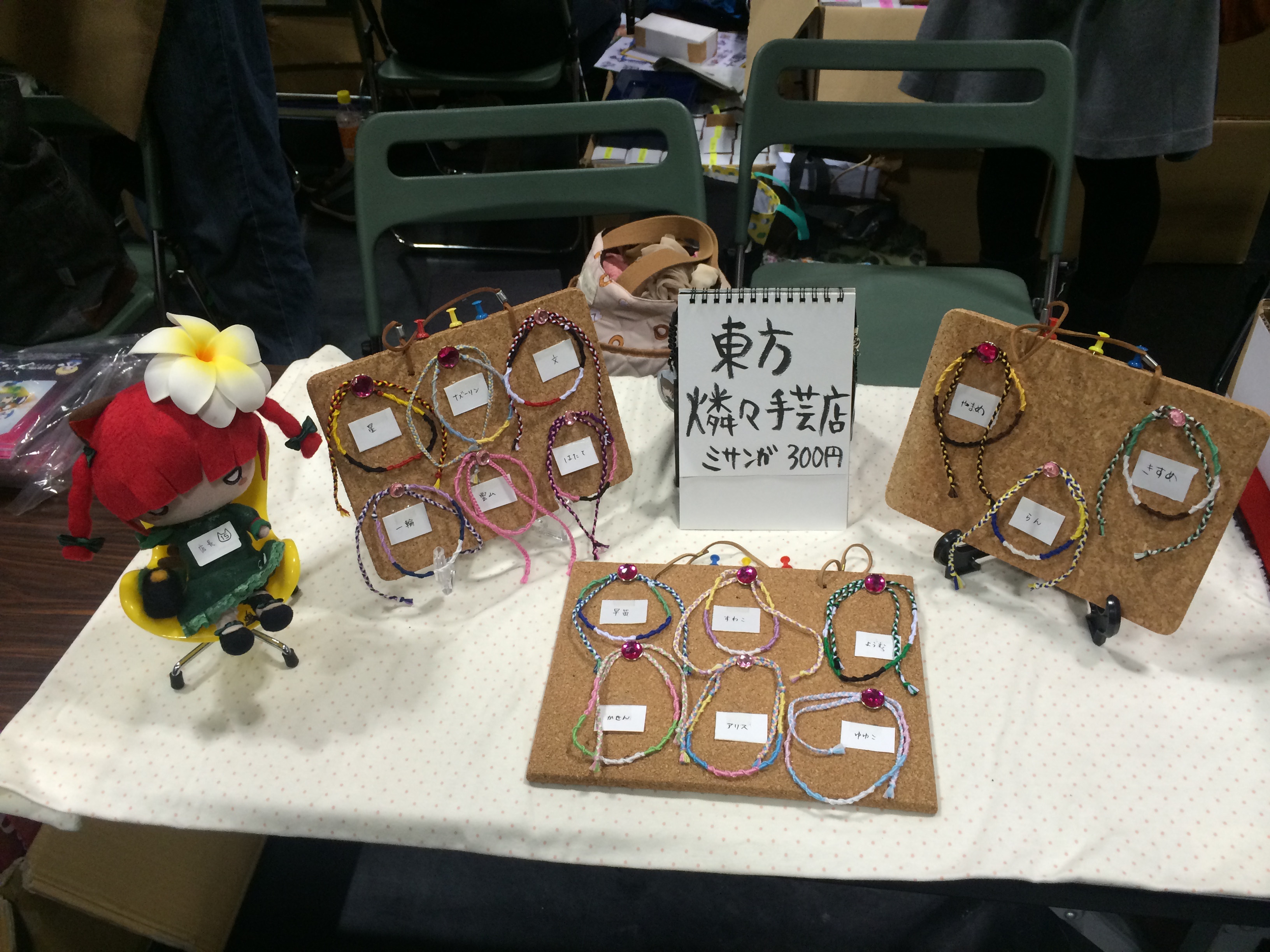 東方キャラのカラーをモチーフとしたミサンガを中心に、レジンストラップ等々の手芸品を作るサークルです。最近ではアクリルキーホルダー、缶バッチも作っていますよ! 【2017年予定】今年の活動は無事終了しました!ありがとうございました。